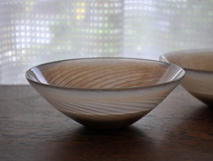不透明で柔らかな彩りのガラス器は集めた光が仄か滲みでます。